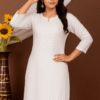 Elegant White Embroidered Cotton Kurti