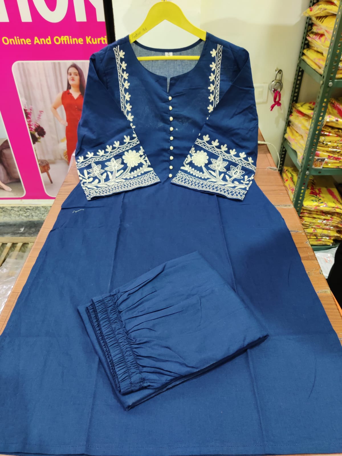 Elevate your festive wardrobe with our Black Aari Work Kurta Palazzo Set, designed for elegance and comfort. The kurta features heavy manually crafted Aari embroidery on the neckline and sleeves, enhanced with delicate detailing for a luxurious finish. Paired with matching palazzo pants, this set is your go-to outfit for any auspicious occasion.