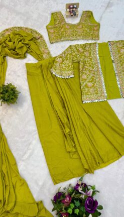 🥻 WE ARE LAUNCHING A NEW SUPERHIT TRENDING READY-TO-WEAR SAREE WITH A FULLY EMBROIDERED KOTI ON PREMIUM CHINON FABRIC, paired with a stitched blouse for a perfect festive look.