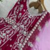 Drape yourself in elegance with this Maroon Faux Georgette Embroidered Gown Set, beautifully crafted with intricate sequence embroidery and graceful flair. Designed with a matching lehenga and dupatta, this set is perfect for weddings, receptions, and festive celebrations.