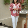 Stay stylish and comfortable with this elegant Pure Cotton 60*60 Top & Bell Bottom Poplin Pant Set. Crafted from breathable cotton fabric, the top is highlighted with Aari embroidery handwork, adding a touch of traditional charm to a modern look. Paired with a chic bell bottom poplin pant, this set is perfect for casual outings, office wear, or semi-formal occasions.