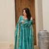 Teal Bandhani Cotton Anarkali Kurti Set with Heavy Dupatta
